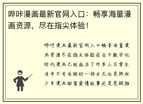 哔咔漫画最新官网入口:畅享海量漫画资源,尽在指尖体验!